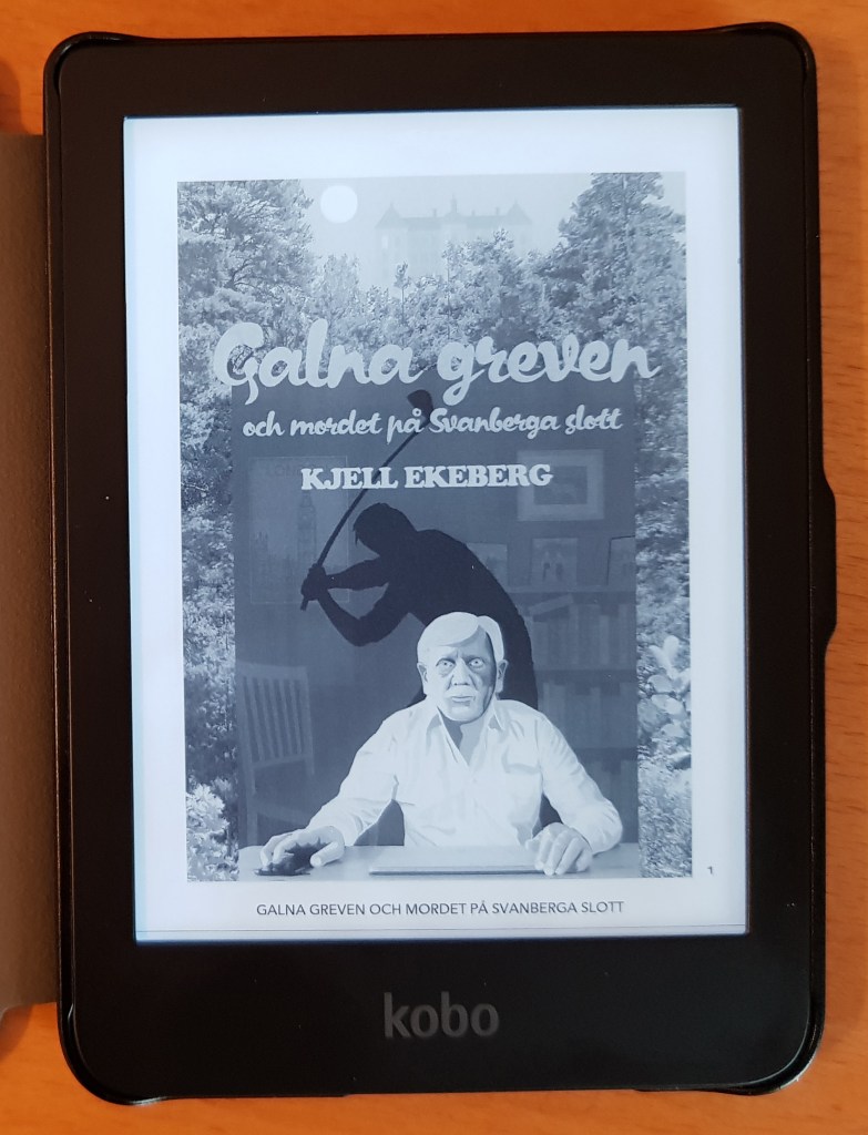 I väntan på att den tryckta boken ska ges ut roade jag mig med att försöka göra en e-bok. Jag laddade hem en testversion av InDesign. Med hjälp av en kurs på Moderskeppet försökte jag göra en EPUB-fil av mitt manus. Efter att ha misslyckats totalt de första gångerna lyckades jag till slut få till en fil som gick att öppna i Adobe Digital Editions. Den var full av fel. Efter att ha analyserat vad felaktigheterna berodde på kunde jag till slut göra en EPUB-fil som i stort sett såg bra ut. Några missar i början bara. De kunde jag inte rätta till eftersom testperioden på InDesign var slut. Jag insåg att det behövs proffs för att göra en tillräckligt bra e-bok. Jag kontaktade Ekström & Garay som ger ut den tryckta boken. De ska nu även ge ut Galna greven och mordet på Svanberga slott som e-bok. Jag vet inte när e-boken släpps, har inte fått en tidsplan än.