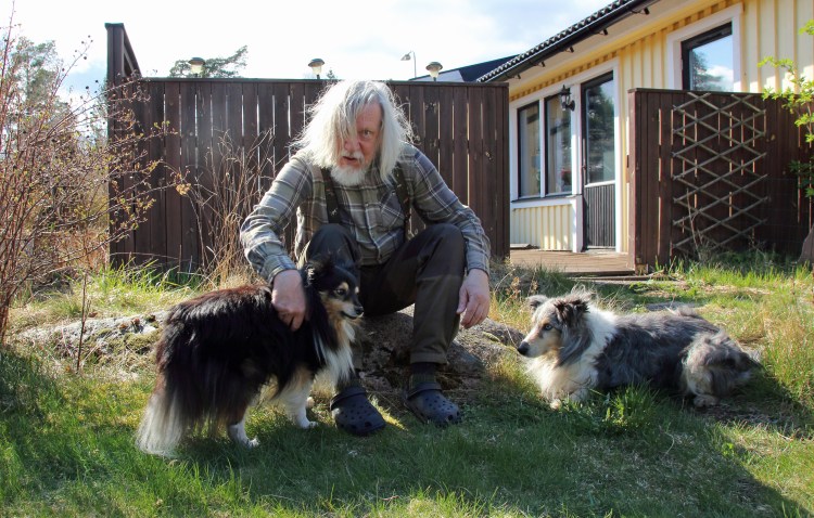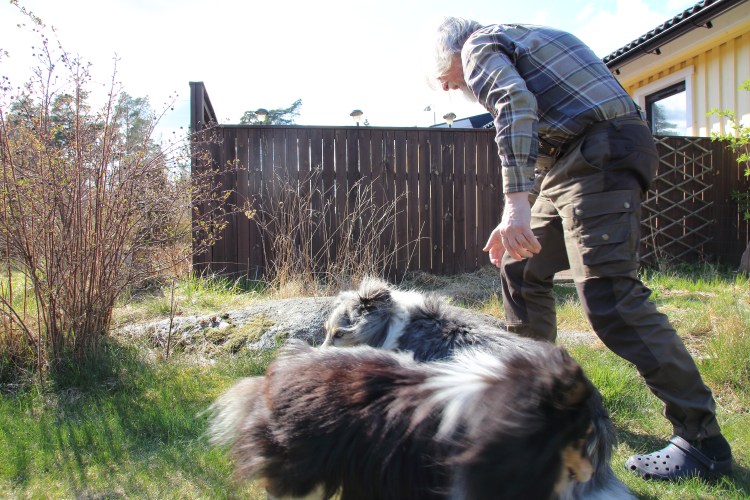 Texterna där jag ska presenteras på förlagets författarsida och på bakre fliken var alltså klara. Men det behövdes bilder till dem. Jag letade upp mitt gamla kamerastativ och tog med hjälp av självutlösare en bild på mig framför en bokhylla. Till fliken ville jag ha en bild där jag var tillsammans med Tarzan och Vira. Jag satte upp kamerastativet på tomten. Sa till hundarna att stanna kvar. Jag gick fram till kameran, ställde in skärpan och tryckte på självutlösaren. Tio sekunder hade jag på mig att komma på plats. När jag tittade ner stod Vira vid mina fötter och Tarzan var på väg till mig. Jag försökte att få dem med mig tillbaka dit där vi skulle vara. Det gick inte.