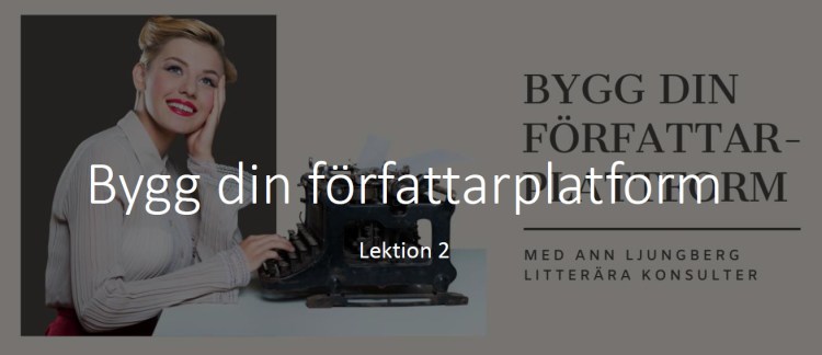 Efter vad jag förstått måste författaren vara aktiv för att sälja sina böcker. Det räcker inte att förlaget gör reklam för boken. De ger ut många böcker och din egen bok riskerar att drunkna i mängden. Jag är en urusel försäljare så jag bestämde mig för att gå en kurs: ”Bygg din författarplattform” av Litterära konsulter. Fyra söndagar online där kursledaren Ann berättade vad man bör göra.