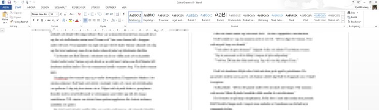 Jag använder Microsoft Word för att skriva manuset. Tidvis har jag också jobbat med Scrivener för att strukturera upp den text jag skrivit och för att få bättre överblick. Mitt Word är ganska gammalt, men uppdaterat regelbundet. Snart ska jag skicka manuset till min redaktör. Det är ingen brådska, han hinner inte börja läsa det förrän i slutet av november.