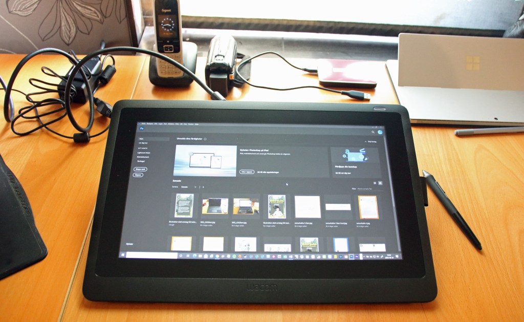 I onsdags kom min senaste pryl. En extra skärm som går att teckna på med en elektronisk penna. Den heter Wacom Cintiq 16. Skärmen kopplas till min dator och visar samma skärm som på datorn. Den verkar fungera bra. Nackdelen är att jag också måste använda datorns tangentbord och att min hand skymmer en del av informationen på skärmen. Den är också väldigt dyr.