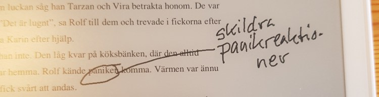 För att se bokmanuset på ett nytt sätt kan man skriva ut det på papper. Det har jag inte gjort. Jag använde skrivplattan reMarkable i stället. Sparade manuset som pdf och laddade ner det på skrivplattan där jag kunde göra anteckningar. Jag hittade en del saker jag kunde förbättra.
