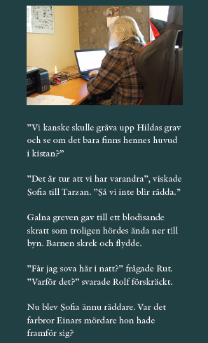Redaktör Johan föreslog att jag skulle skriva en baksidestext och en text till bakre fliken samt en presentation av mig själv för förlagets hemsida. Jag skulle också kunna ta fram foton till presentationen samt fundera på hur omslaget borde se ut. Texterna mejlade jag till Johan efter några dagar. Jag är med i gruppen ”Författare på Facebook”. Där läste jag ett tips att lyssna på manuset i Word. Det gjorde jag. En entonig röst läste upp det jag skrivit. Det tog lång tid och jag orkade bara lyssna på ett par kapitel per dag, men jag hittade faktiskt ett antal korrfel.