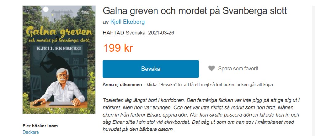 I dag släpptes Galna greven och mordet på Svanberga slott både som tryckt bok och e-bok. Något releaseparty blir det inte men köp gärna boken. Jag har googlat och hittat den hos Adlibris, Bokus, Bokon (bara e-bok), Amazon och Akademibokhandeln bland annat. Jag såg den till och med hos en finsk nätbokhandlare, men den länken tappade jag bort.