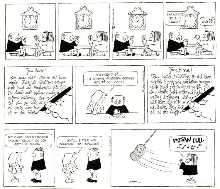 En av de första serier jag gjorde var skämtserien ”Morfar och mormor”. Den publicerades i Serietidningen. Jag kommer inte ihåg om jag fick ut den i några andra tidningar också.