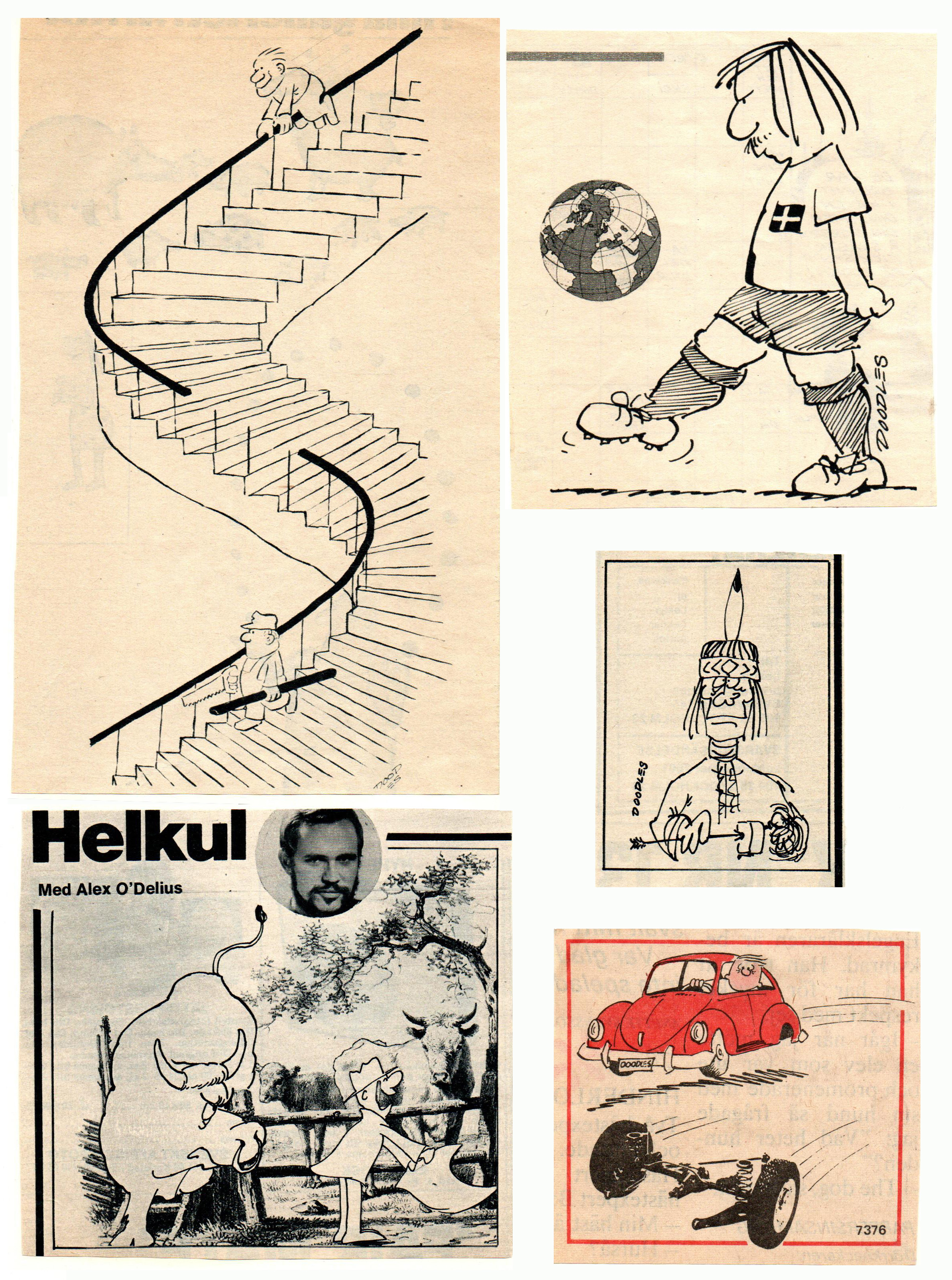 Under 70-talet gick jag runt på tidningsredaktioner i Stockholm och sålde skämtteckningar. Jag sålde även teckningar i Helsingfors, Oslo, Köpenhamn, London och Paris under mina resor.