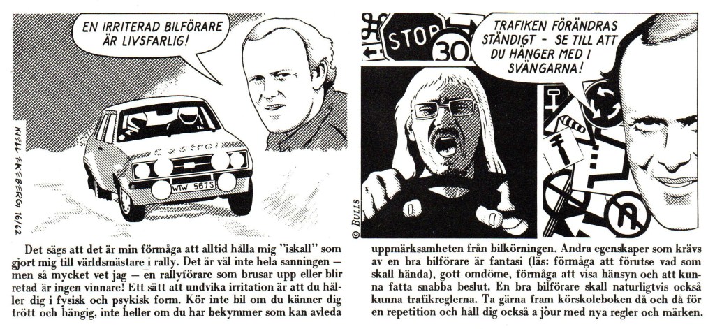 Nästa teckningsuppdrag till Bulls Presstjänst var en instruktionsserie om bilkörning med Björn Waldegård. Han hade blivit världsmästare i rally och han skrev texterna. Motor med Waldegård publicerades även den i många länder runt om i världen.