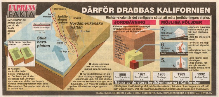 Jag har sökt på Kungliga biblioteket på internet. Sökte på mitt namn och Expressen 1985-1995. Jag fick upp 645 sidor där jag gjort diagram, kartor, grafik, teckningar och fotomontage. Men det går tyvärr inte att se vad jag gjort. Upphovsrättsskyddat och får inte visas på kb.se.