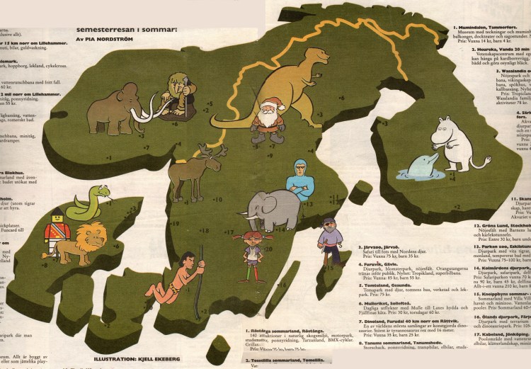 Ett uppslag om barnvänliga platser att besöka i de nordiska länderna. Nästa gång ska jag berätta om när Göran Persson ville köpa en originalteckning av mig.